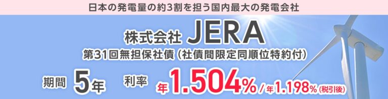株式会社JERA第31回無担保社債(社債間限定同順位特約付)(愛称:JERA債)